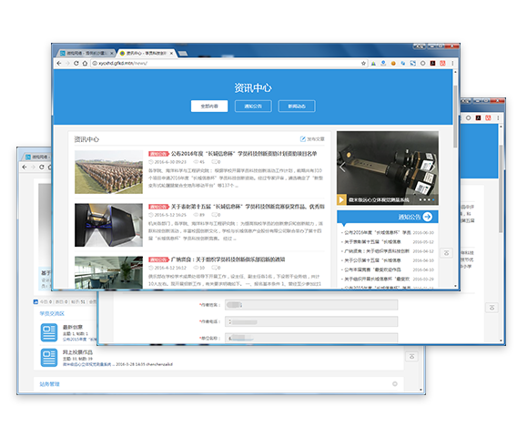 本项目为辅助外挂大学科研部网站,分多期完成,后续还会有新的功能模块出现;目前主要包含门户网站、作品发布、师生交流论坛、活动创建、活动报名、活动投票、论文及作品评审系统等,整个系统运行在军网内网中,采用mtn域名。